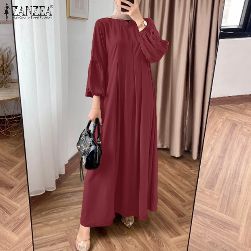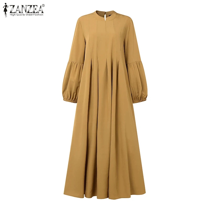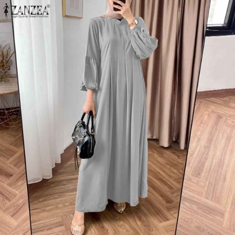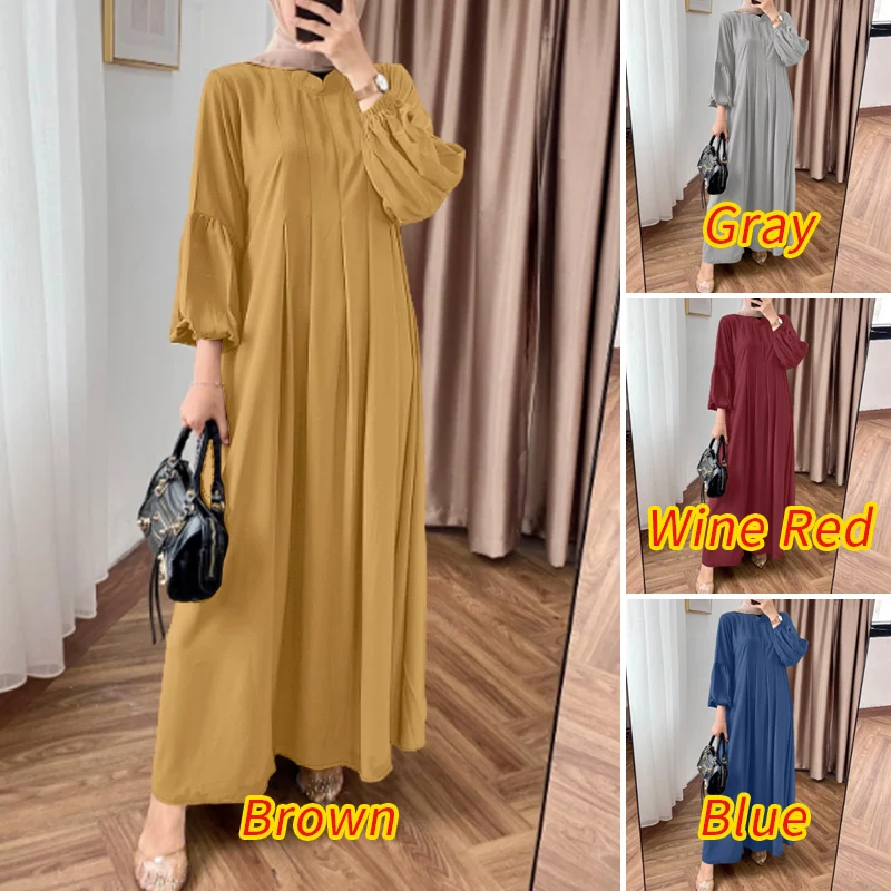 Elegant Long Sleeve Pleated Sundress Muslim Abaya