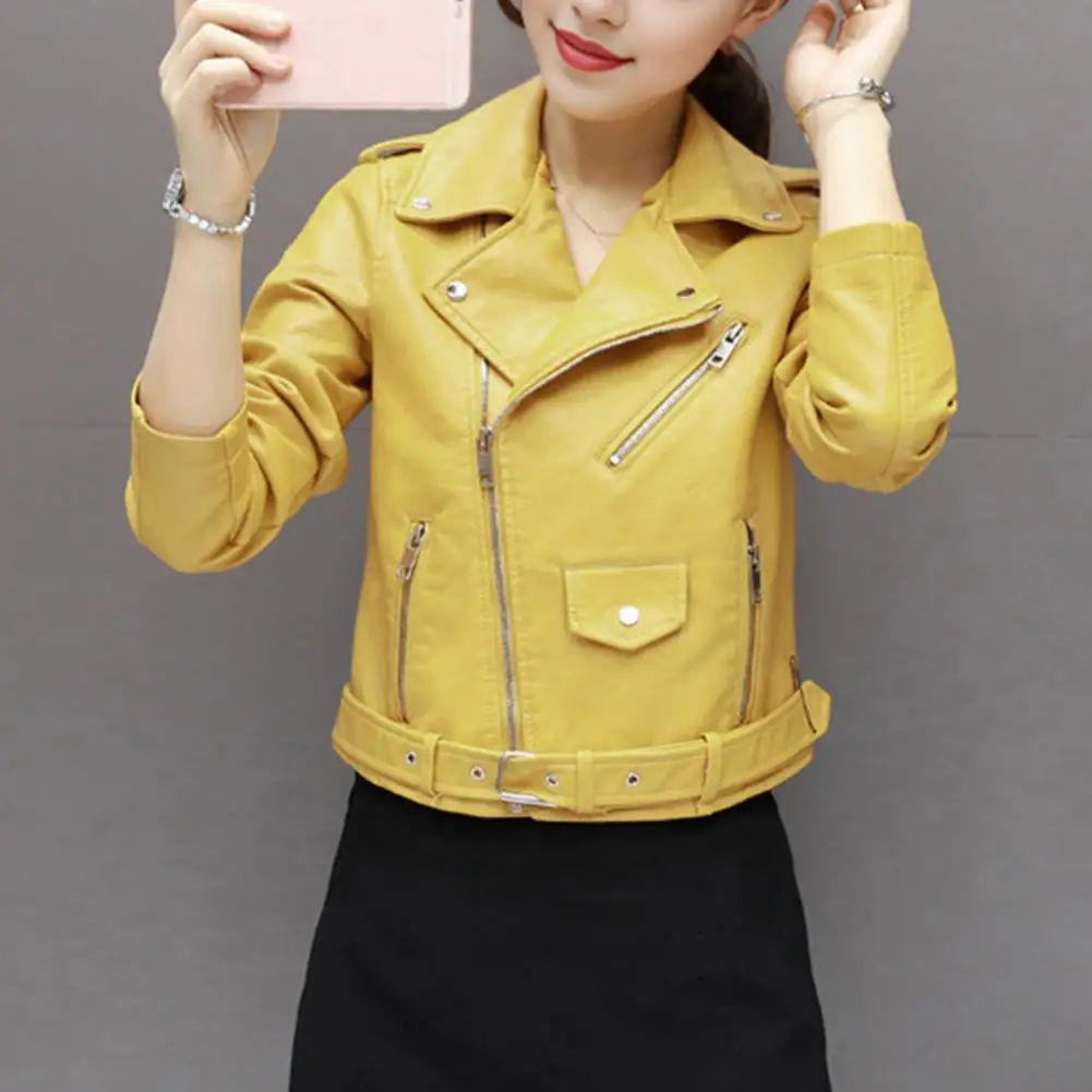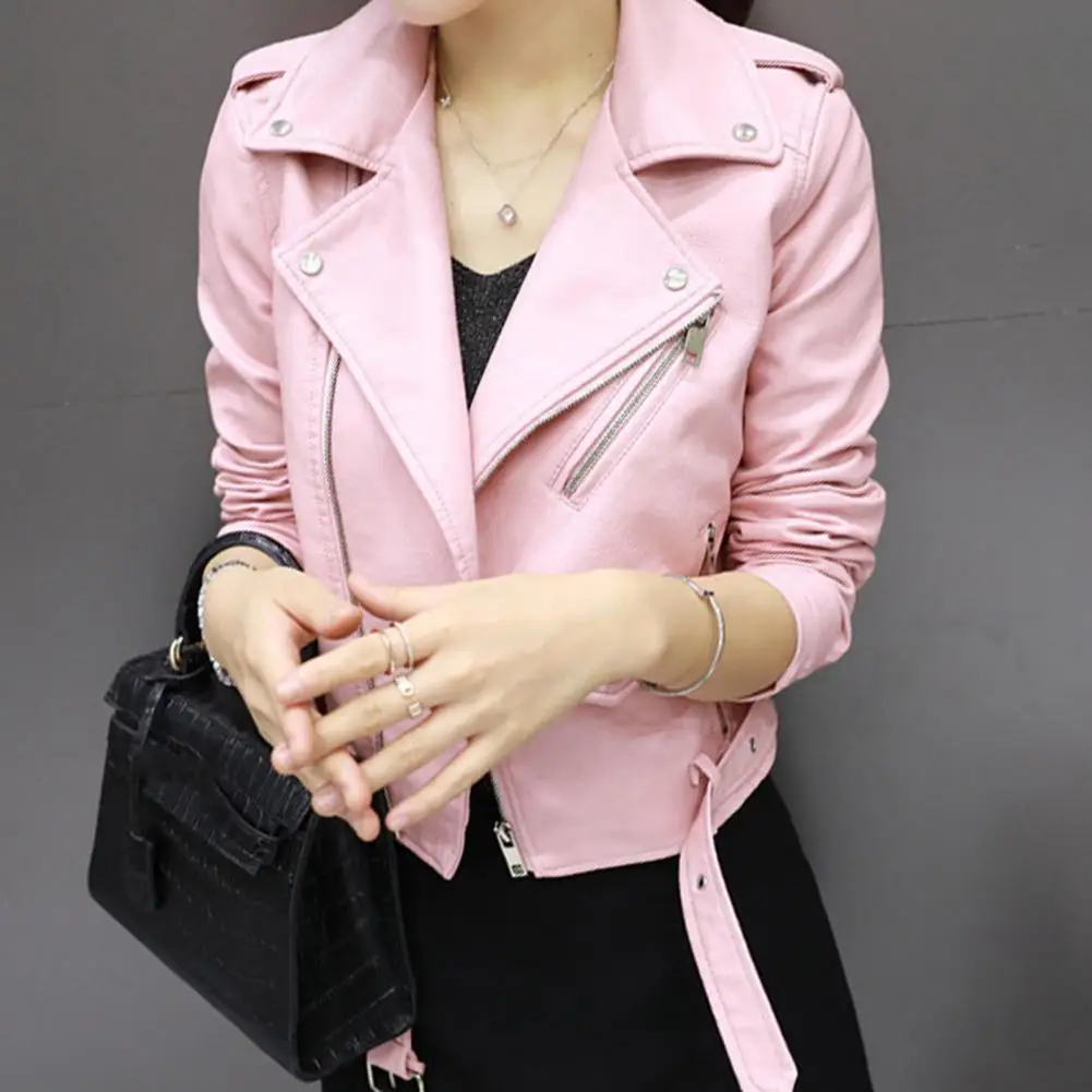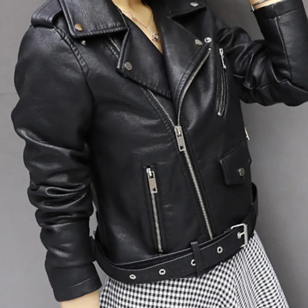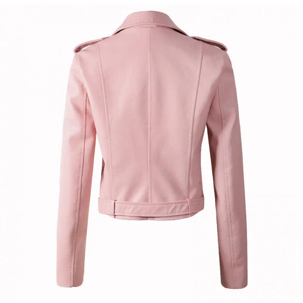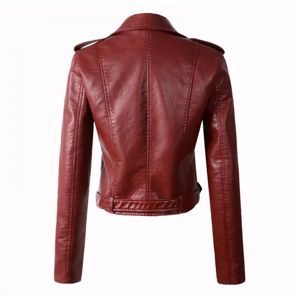 Elevate your style with this women's solid color jacket, exuding elegance and versatility. Available in a range of colors, this short jacket features chic zipper decorations for a personalized touch. Crafted from faux leather, it offers excellent windproof protection.