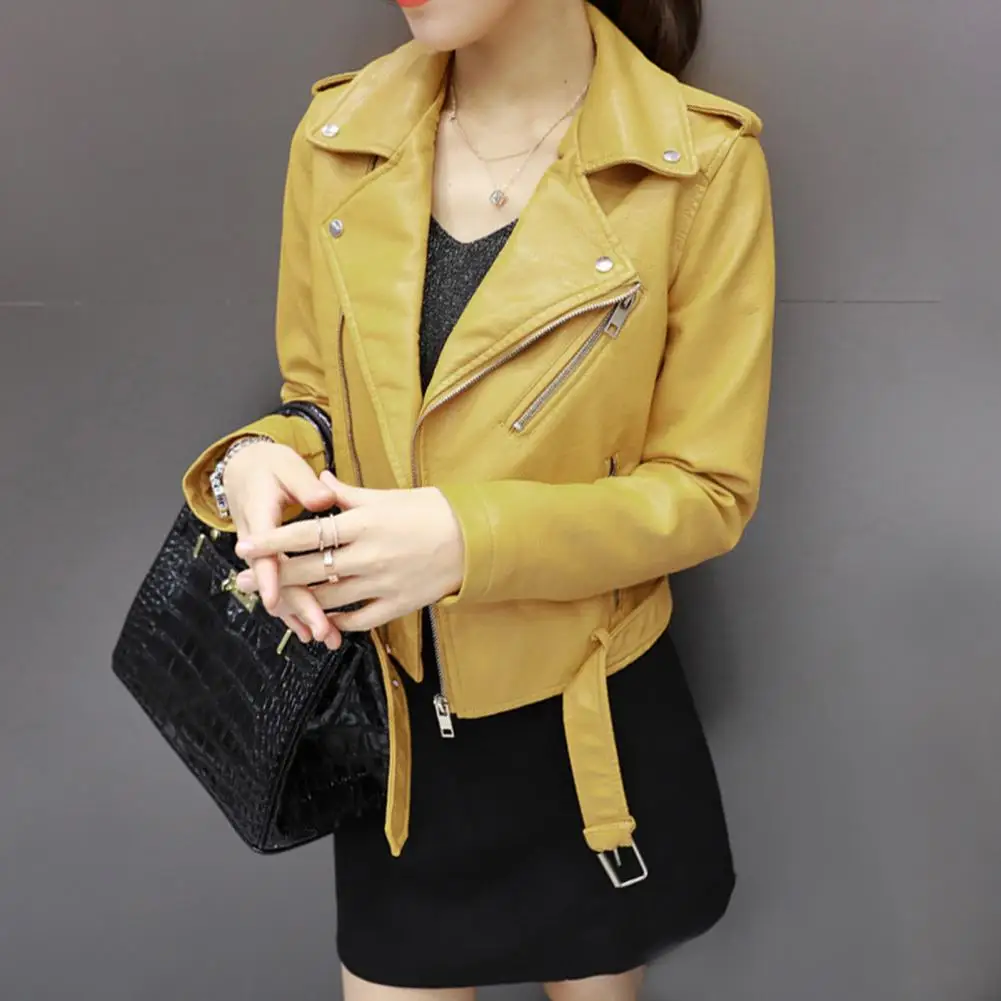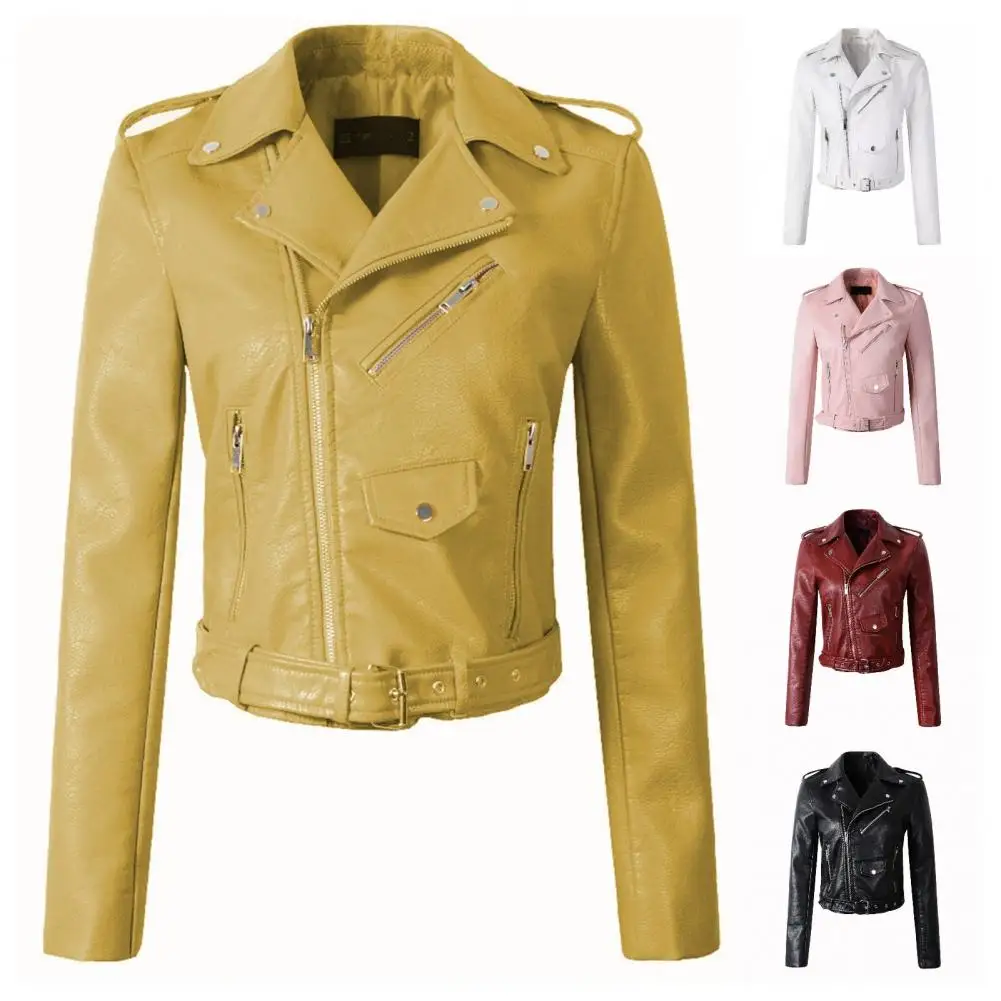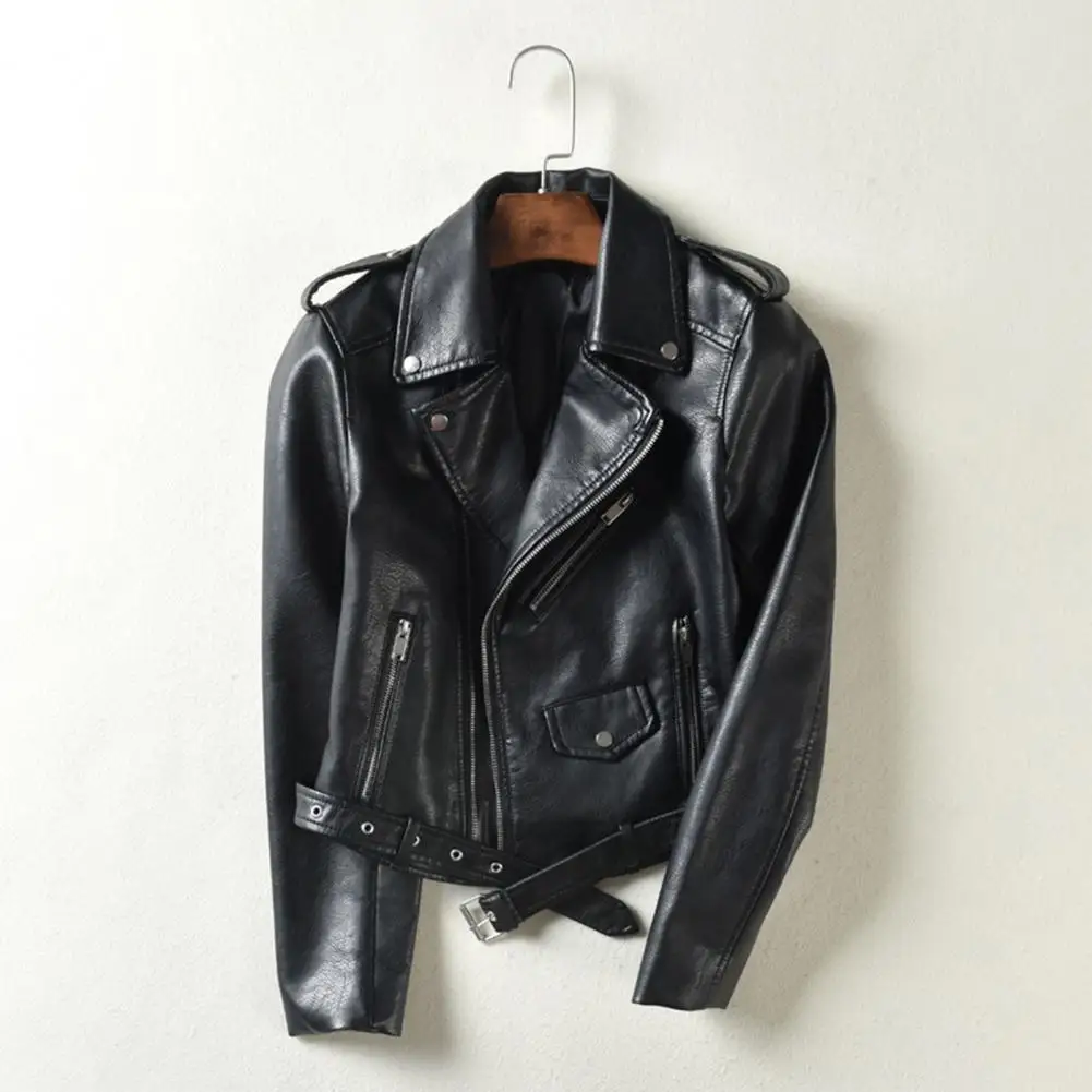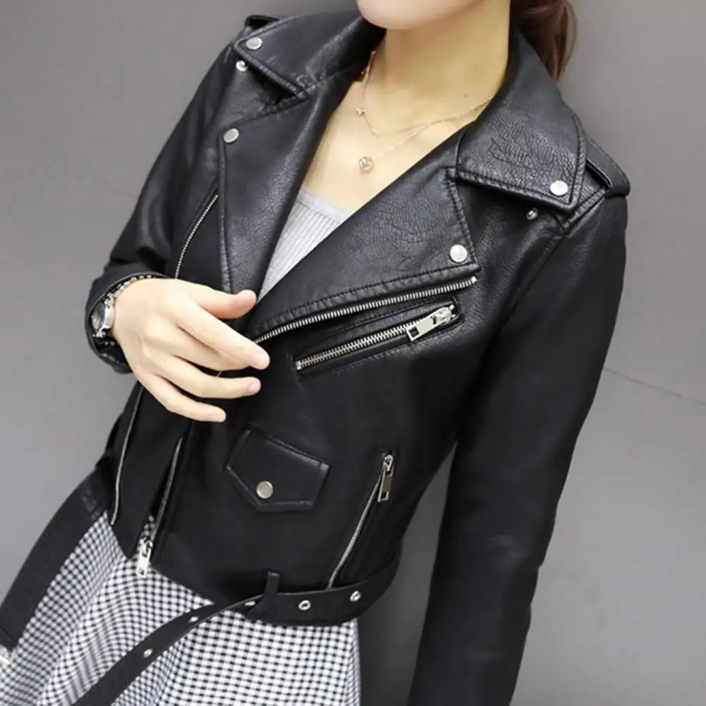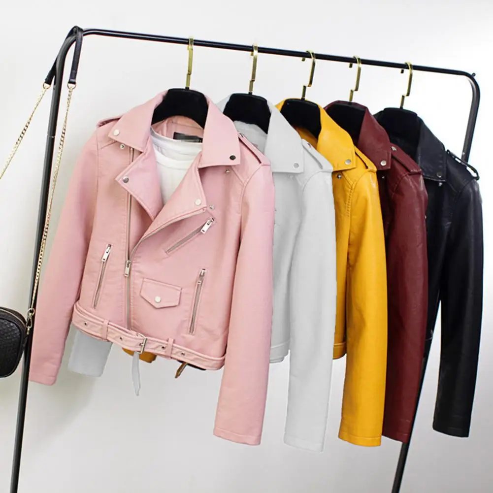Elevate your style with this women's solid color jacket, exuding elegance and versatility. Available in a range of colors, this short jacket features chic zipper decorations for a personalized touch. Crafted from faux leather, it offers excellent windproof protection.